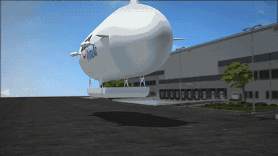 小型飛艇會(huì)將貨品從地面?zhèn)}庫(kù)運(yùn)輸?shù)街魍希搜a(bǔ)貨之外也能為其充電!