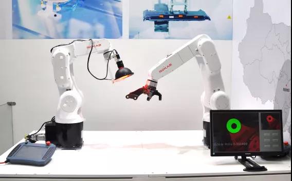 珞石機器人自主研發的控制系統其性能處于國內領先水平。其中的高精度誤差補償與慣量前饋技術,將機器人的重復定位精度控制在0.02mm以內,并且高速工作中動作敏捷精準。在近期深圳機械展與上海慕尼黑電子展分別做了速度與精度展示,機器人可以最大加速度運行且高速轉彎不降速,贏得了業內的一致認可與好評,這也是機器人運動精度的有力證明。