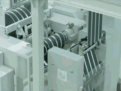 在這里,用模切機模切形成電芯的導電極耳。極耳是電池頭上的耳朵,通俗地說就是電池正負極的耳朵在進行充放電時的連接點。