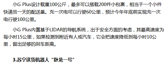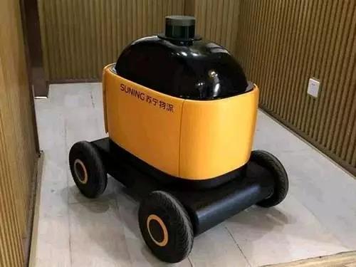 今年4月,蘇寧自動送貨機器人在南京濱江壹號小區亮相,進行包裹配送任務,這是國內第一輛可實現電梯交互的無人配送車“臥龍一號”。