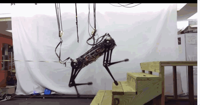 麻省理工大學研發的第三代獵豹機器人(Cheetah 3)現在可以實現跳躍、在崎嶇的地形馳騁、或爬上堆滿雜物的樓梯,并在遇到突然的猛拉、推搡時能迅速恢復其平衡。
