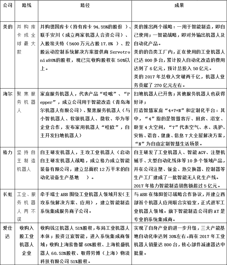 根據統計,目前全國主要品牌的家電企業都在或多或少的自主開發機器人或者參股機器人企業。