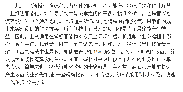 對于智能物流體系建設給上汽通用帶來的價值,倪斌表示,上汽通用原來的物流體系基礎扎實,在智能物流體系建設過程中,每提升一小步都是一次大的突破,目前的探索達到了預期效果。上汽通用智能物流的不斷推進,能夠精準對接需求與資源兩端,全面對接產品設計、制造執行及市場銷售等關鍵環節,支持快速精準的產品個性化、柔性生產,打造了公司的智能制造核心競爭力。