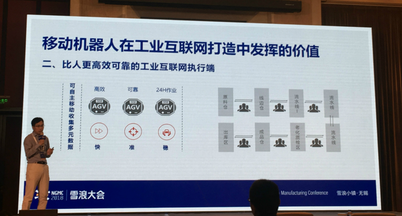 6月30日,以“從制造業中來,到制造業中去”為主題的2018雪浪大會在中國無錫太湖國際博覽中心隆重召開。迦智科技COO陳首先受邀在本次大會的分論壇上,分享了題為《關于移動機器人在制造業前瞻應用》的演講。他以當下傳統制造業產線前后端的智能化程度對比為切入,結合迦智自身的科研方向和成果,闡述了隨著移動機器人在產線后端的大規模使用,將在助推企業本身轉型的同時,真正實現傳統工業向智能制造的轉變。