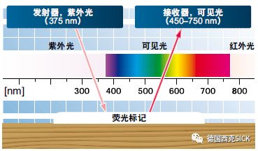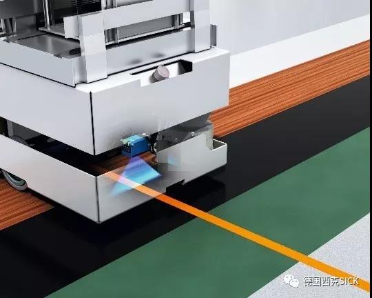 而“熒光導(dǎo)航”的路線是以熒光顏料制作的色帶。熒光導(dǎo)航傳感器發(fā)射經(jīng)調(diào)制的紫外光,熒光色帶上的熒光物質(zhì)會(huì)被紫外光激發(fā),發(fā)射出波長在可見光光譜范圍內(nèi)(約420 nm 到750 nm)的可見光。熒光導(dǎo)航傳感器會(huì)接收此光線,從而測量判斷色帶與AGV的相對(duì)位置(SICK熒光導(dǎo)航傳感器OLS系列可精確至+/-1mm),從而使小車沿既定路線行駛。
