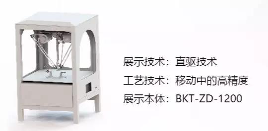 BKT-ZD-1200直驅系列是勃肯特今年7月上市的新品。直驅機械構成中減去了減速機的參與,避免了減速機易產生的漏油風險,高效低耗,減少了保養維護次數,然而業內對去掉減速機后本體定位精度說法不一。勃肯特直驅系列將重復定位精度保持在±0.01mm內,此次展出的產品對超高精度的千分表進行撞擊,由此證實直驅系列在3C、食品、醫藥行業加工生產中的廣泛應用前景。