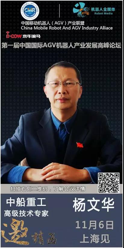 11月6日,上海新國際博覽中心,由中國移動機器人(AGV)產業聯盟主辦,《物流搬運機器人》雜志社 、新戰略機器人產業研究所以及CeMAT AISA亞洲國際物流展承辦的《第一屆中國國際AGV機器人產業發展高峰論壇》將正式開啟,屆時,中船重工高級技術專家楊文華將為大家解讀《AGV機器人技術現狀與發展趨勢》,敬請關注!