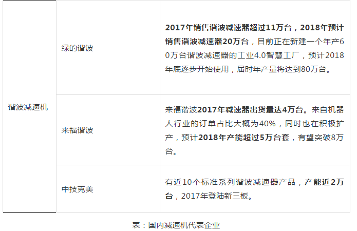 相關(guān)數(shù)據(jù)顯示,2017年中國機(jī)器人行業(yè)對(duì)減速器的需求量達(dá)到31.96萬件,同比增長63.9%;市場規(guī)模22.4億元,同比增長45.4%;預(yù)計(jì)2018年中國工業(yè)機(jī)器人減速器新增需求量將有望突破43.5萬臺(tái),同比增速超35%;預(yù)計(jì)市場規(guī)模達(dá)到30億元左右,同比增速超30%。