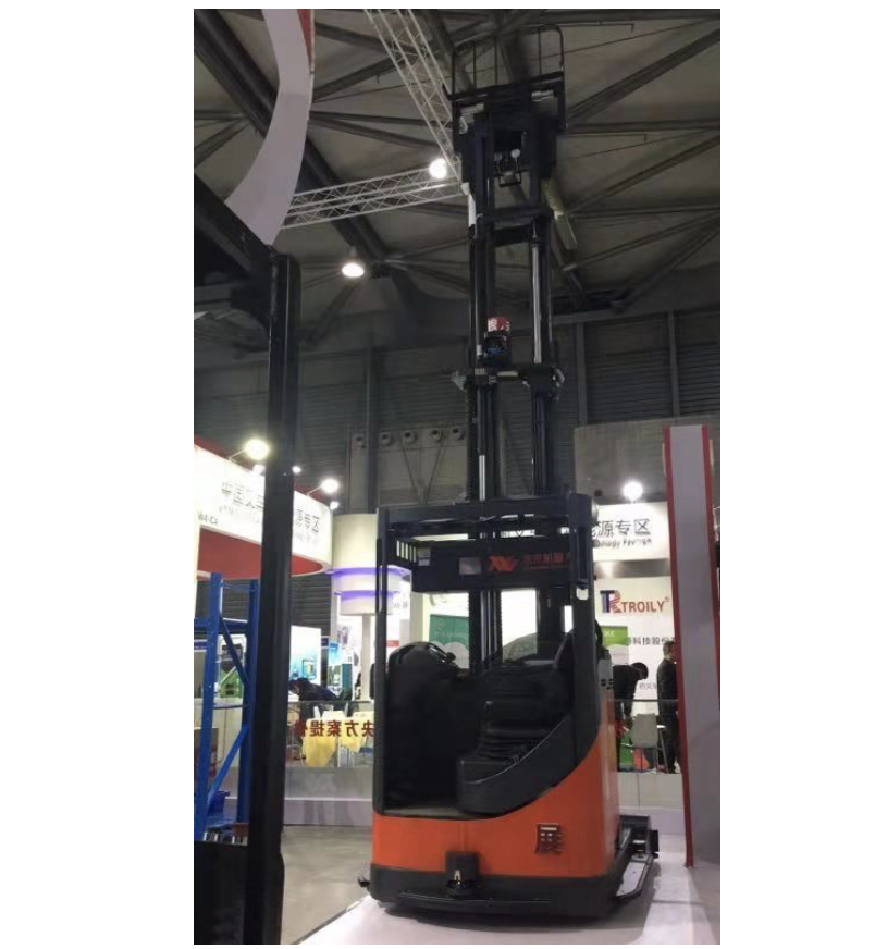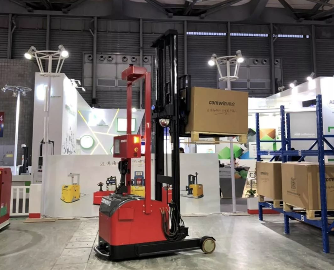 井松除了其移動視覺導航AGV之外,還帶來了新產品“全向前移式堆高AGV ”。此款堆高車的舉升高度可達到8米。