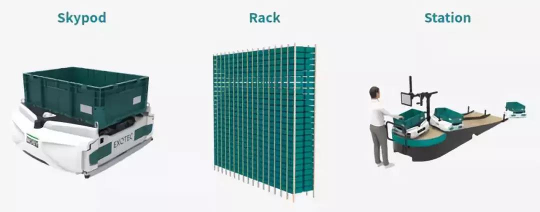 法國Exotec公司致力于通過三維移動機器人和配套設施,為電商和零售行業打造全自動化的倉儲系統。整個系統由三個主要模塊組成:倉儲機器人Skypod、貨架、站點。