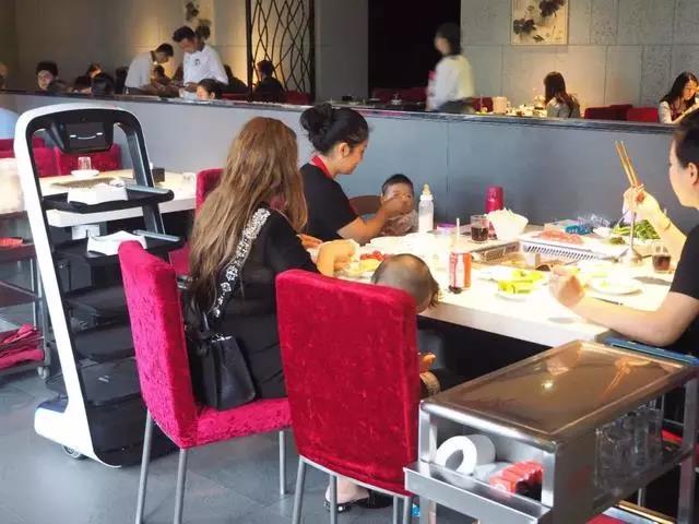 在海底撈的智慧火鍋餐廳里也能看到機器人自動入菜、上菜的身影。