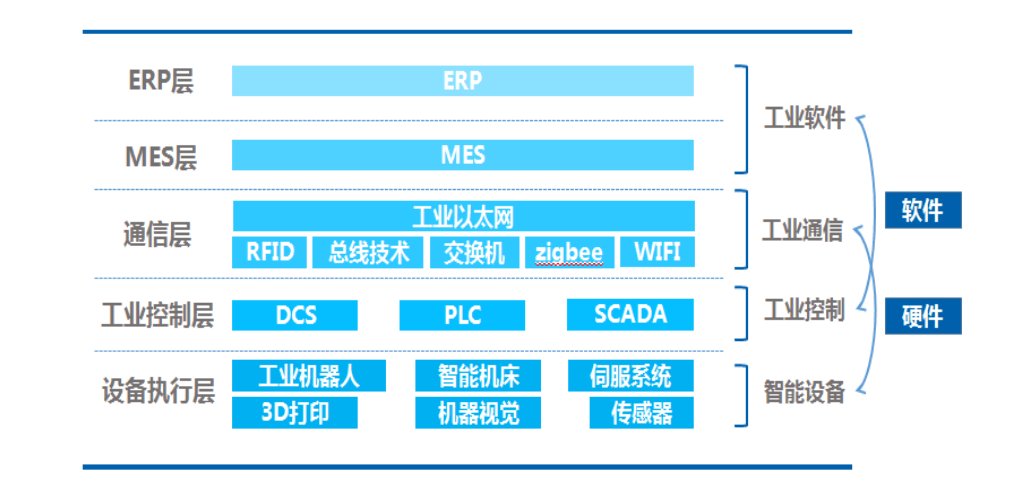 實現智能工廠乃至工業4.0,推進工業互聯網建設,實現MES應用,最重要的基礎就是要實現M2M,也就是設備與設備之間的互聯,建立工廠網絡。勃肯特智能工廠并不僅僅是簡單的自動化,而是一個柔性系統,能夠自行優化整個網絡的表現,自行適應并實時學習新的環境條件,并自動運行整個生產流程,并同時與具有類似生產系統的全球網絡甚至整個數字化供應網絡互聯。通過MES為著力點,上接ERP系統,下接現場的PLC程控器、數據采集器、條形碼、檢測儀器等設備,貫徹落實生產策劃,執行生產調度,實時反饋生產進展。
