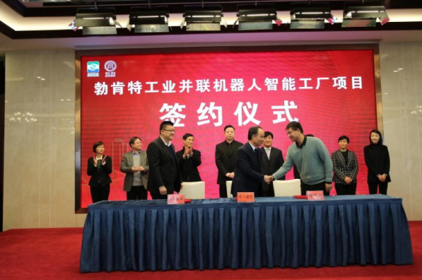 12月20日,勃肯特與鎮江經濟技術開發區(以下簡稱鎮江經開區)進行了勃肯特智能工廠項目簽約儀式,將在2019年落戶鎮江經開區,依托勃肯特前沿的工業機器人技術,融合物聯網數字化的信息平臺,打造具有自動化與柔性化的智能工廠。