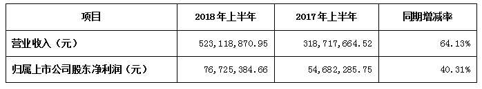 在圖二拓斯達2018年上半年年度最新數據表示,拓斯達2018年上半年營收總額約達5.231億元,與去年同期營收總額3.187億元相比,同比增長了高達64.13%;在歸屬上市公司股東的凈利潤方面,拓斯達2018年上半年凈利潤超過7673萬元,與去年同期5468萬元相比,同期增長了40.31%。