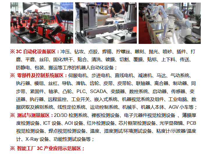 展會聚焦行業應用,全面覆蓋3C制造全產業鏈,最大程度滿足專業買家一站式高效采購需求。為希望在工業4.0大潮中實現智造與創新的每一家3C制造廠商搭建一個高效、便捷的采購貿易與技術交流大舞臺!