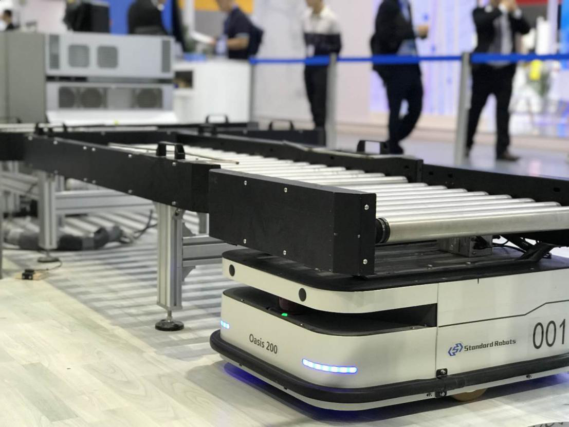 斯坦德Oasis系列移動機器人平臺專為3C、汽配等行業工廠環境中的物料運輸而設計,可與控制器集成以提供端到端解決方案。同時結合其FMS(Fleet Management System)機器人調度管理系統能夠基于領先的調度與路徑規劃算法,配置人工參數實時設定交通規則,實現多機器人多任務并行執行,并可根據應用場景靈活配置。