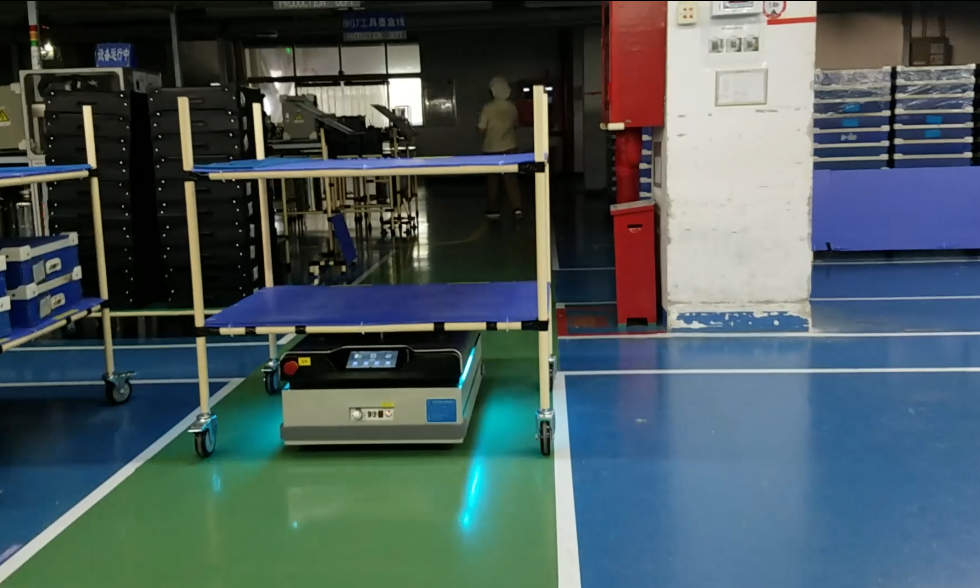 EMMA200主要負責承擔墨盒產線的原材料從線邊倉到生產線相應工位的輸送工作。當產線工人發現該原料需要補貨時,通過調度系統和呼叫盒設備發出指令,EMMA200即將所需的原料從線邊倉搬運到生產線指定下料工位,并回收空料架。且為了更好適應現代生產節拍需要,當EMMA200的電壓達到一定下限后會自動進行充電,整個過程無需人為干涉,還能做到每天24小時不間斷運轉,節省了大量的人力成本。