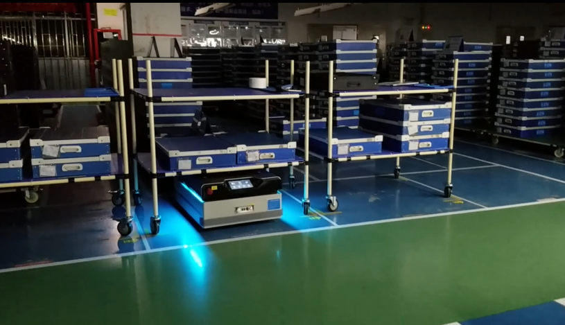 同時,作為迦智科技輕載AGV的代表產品,EMMA200車體靈活,可自由穿梭于工作區域內,即使是在人流密集的產線邊,EMMA200也能夠自動識別和適應周邊的動態障礙物,實時規劃安全路徑,確保了所需物料的按時按需送達。而當用戶需要變更生產線時,EMMA200的無軌導航特性又大大降低了重新部署的成本,能夠快速響應用戶生產需求的變化。最終,該項目中應用的EMMA200經過調試后正常運行,一年只需上門升級一次,產品質量穩定可靠。