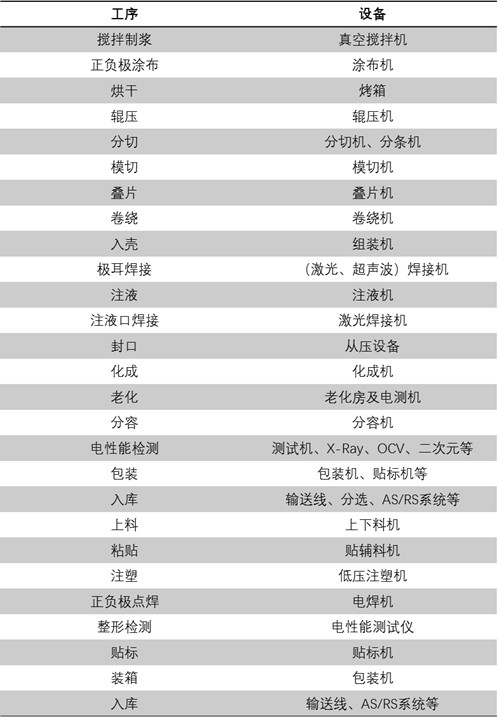 其中,電芯段大致可分為材料攪拌、涂布、輥壓、分切、制片、疊片/卷繞、注液、封口、焊接、化成、分容、檢測(cè)、模組等,除疊片工藝和卷繞工藝相差較大之外,各不同廠家在主要工藝上大體相同。