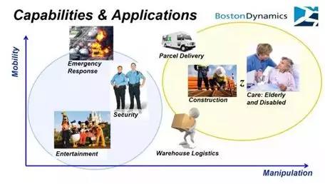 波士頓動力想借助卡通片中深入人心的機器狗形象,向公眾推廣第一款商用機器人。娛樂功能、應(yīng)急響應(yīng)、安保,是波士頓動力眼下短期內(nèi)專注的應(yīng)用場景,倉儲物流、配送以及工程建設(shè)、看護(hù)服務(wù)是波士頓動力將著眼于的中期和長期目標(biāo)。