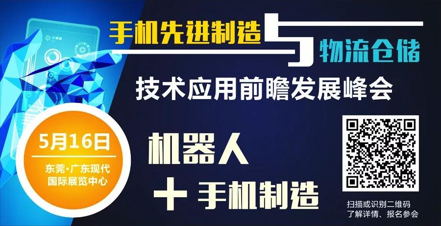 【5月16日,新戰略機器人產業研究所、惠州智能終端制造協會主辦的《手機先進制造與物流倉儲技術前瞻發展峰會》,將在東莞現代國際展覽中心3號館主辦,會議將專注于手機(3C)產業鏈的智能制造與智慧物流主題,詳情請關注以下二維碼】