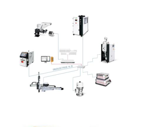 信易的sFactory 4.0可實現完整的全自動無人產線。該方案集成了注塑機、水式模溫機、歐化干燥機、色母機、熱流道系統、多關節機器人、自動包裝機、AGV等設備。配備雙D-SUB通訊接口,可實現設備間數據的無縫傳輸,在設備層面為智能制造打通數據流環節。配套中央原料處理系統、中央冷水系統、中央供氣系統及動力電系統的智能監控,實現遠勝于傳統注塑成型過程的更詳盡數據采集。