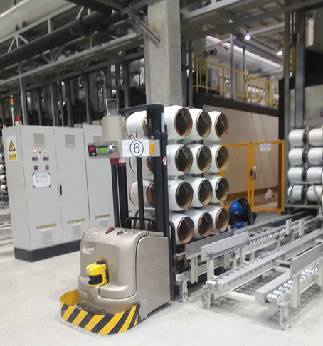 泰山玻璃纖維有限公司是以玻璃纖維及其復合材料為主的國有大型企業(yè),隸屬于中國中材集團有限公司,是全球五大、中國三大玻璃纖維制造企業(yè)之一。昆船智能為泰山玻璃纖維有限公司提供近40臺后叉式激光導引AGV,用于物料的生產搬運。