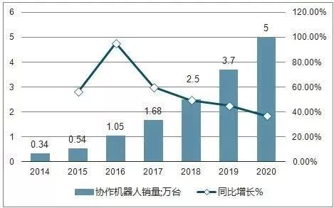 預計2018年協作機器人銷量達2.5萬臺,市場規模達43億元。