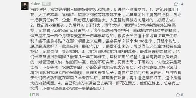 地產(chǎn)解毒發(fā)了“碧桂園機(jī)器人,亡于招聘博士和做PPT”這篇文章,吸引了一大批博智林公司的員工在文章下面留言,這些留言直指碧桂園發(fā)展機(jī)器人的問題所在,可以說比文章本身還要精彩。