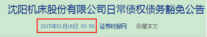 在八部委支持計劃出爐后,12月10日晚,沈陽機床公告稱,根據有關協議,建行鐵西支行向沈機集團提供10億元資金,然后,4天后的12月14日,沈陽機床公布債務豁免通知。