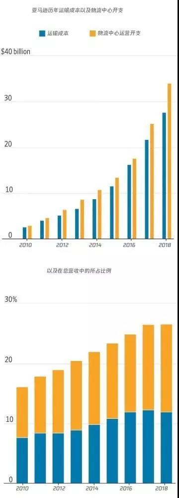 物流咨詢公司MWPVL International表示,2005年之前,亞馬遜在全美只有三個配送中心。2013年的假日購物季是公司物流業務的一個轉折點。此前美國航空公司接到的亞馬遜訂單多得讓它們不堪重負,導致包裹延誤,令客戶非常不滿。自那以來,亞馬遜將倉儲、分揀和其他配送設施的數量從大約65家增加到了大約400家。