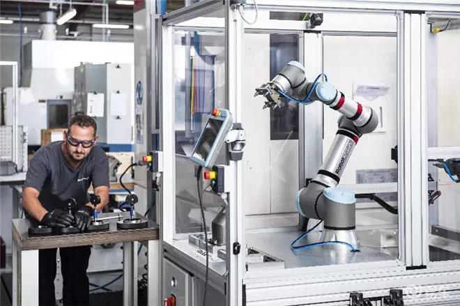 優傲機器人現場展臺工作人員對記者介紹,這款機器人能為制造商帶來很顯著的優勢。比如,它能使自動化加速變得簡單快捷,無論用戶是否有相關使用經驗或編程知識,都能快速完成編程和集成,用戶從開箱,取出協作機器人,安裝到首次簡單作業編程,通常不到一個小時便能完成,而且它的占地面積還很小。