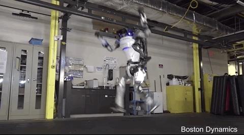 從視頻中看,每翻一個(gè)筋斗都會(huì)給機(jī)器人一個(gè)相當(dāng)大的前進(jìn)動(dòng)力,但在視頻中,Atlas似乎并沒(méi)有因此失去平衡。