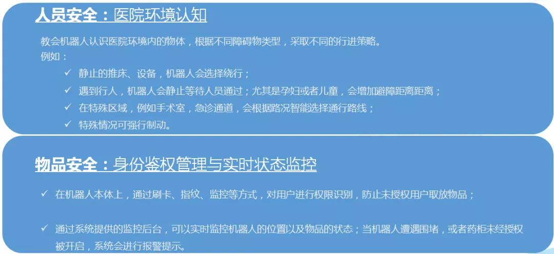 陳旭表示,醫(yī)院物流機器人選型主要考慮的是安全性和功能性兩項指標。
