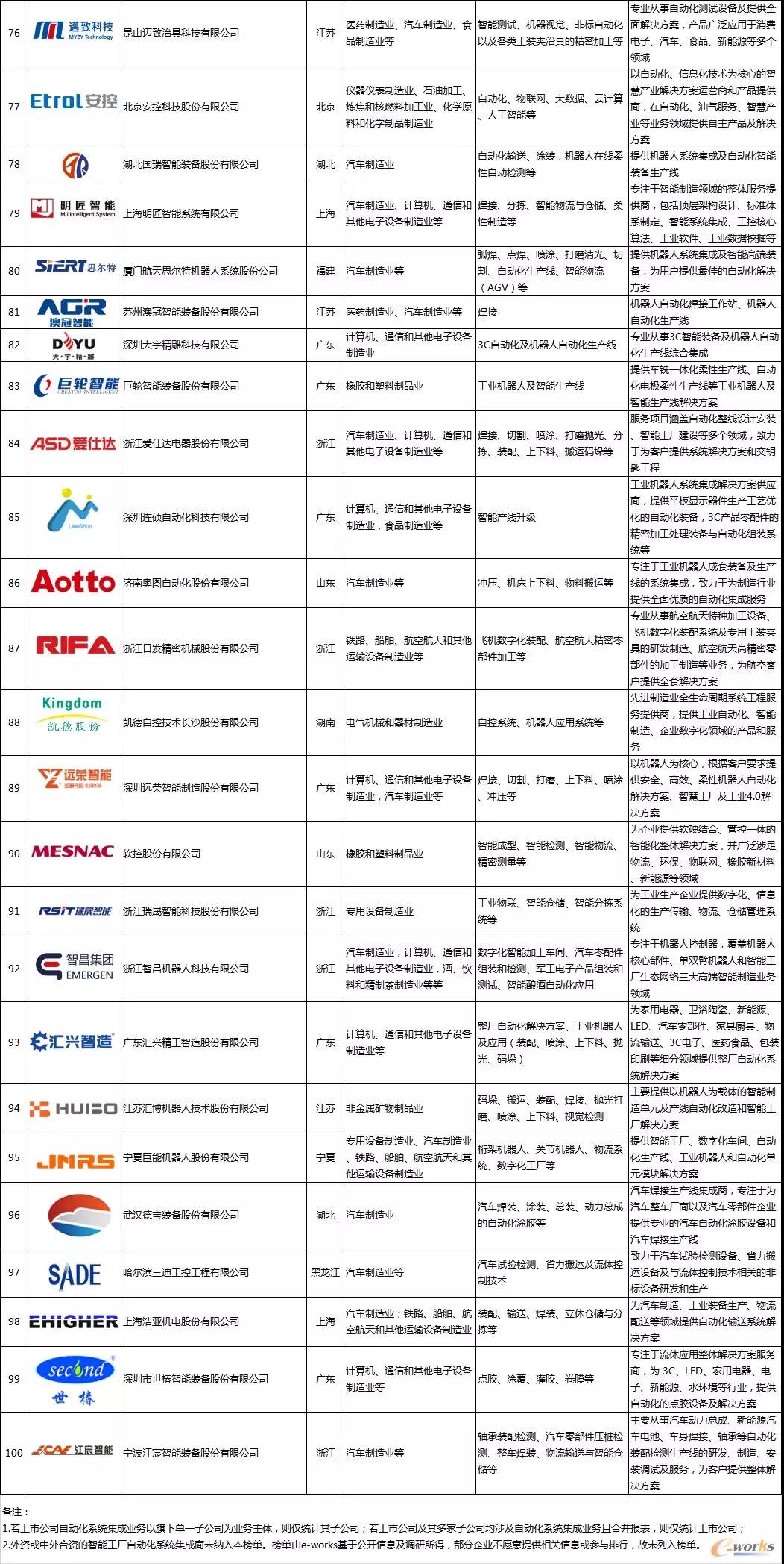 中國智能制造和兩化融合領(lǐng)域的媒體、咨詢與研究機構(gòu)e-works歷時四個多個月,在調(diào)研分析了國內(nèi)數(shù)百家自動化系統(tǒng)集成商,訪談了多名企業(yè)的創(chuàng)始人和行業(yè)內(nèi)專家,搜集了眾多行業(yè)典型案例的基礎(chǔ)上,正式發(fā)布了《2019智能工廠自動化集成商百強榜》。