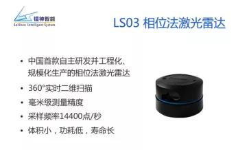鐳神智能自主研發(fā)的LS03系列相位法激光雷達是中國首款自主研發(fā)并工程化、規(guī)模化生產的高端相位法激光雷達,其擁有360°的掃描角度,最遠探測范圍可達24米,測量精度精確至±1cm(10m內),溫漂尺寸和黑白差距僅僅±5mm,最小角度分辨率達到0.25°,測點速率高達14400點/秒,體積很小,價格還相當實惠,可廣泛應用于對精度和穩(wěn)定性有較高要求的AGV、服務機器人等智能移動設備,實現(xiàn)高精度的自主定位導航和避障。