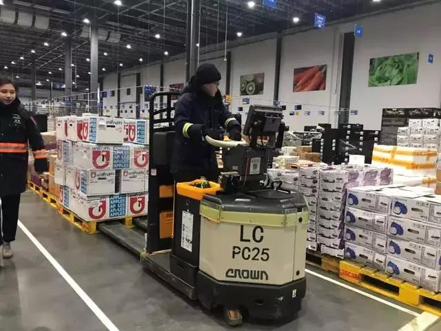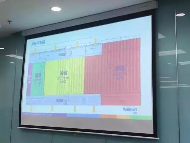 據了解,沃爾瑪華南生鮮配送中心2015年立項,2016年投建,2018年3月正式投入運營。配送中心分為恒溫、冷藏、冷凍三個庫區,恒溫區4000多平方米,溫度保持在12-18°C;冷藏區接近1.2平方米,溫度在0-5°C;冷凍區超過1.2萬平方米,溫度控制在-18°C。