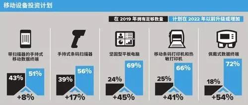 受訪者們表示,企業在很大程度上加大了對堅固型平板電腦、工業掃描器和佩戴式數據終端的投資。