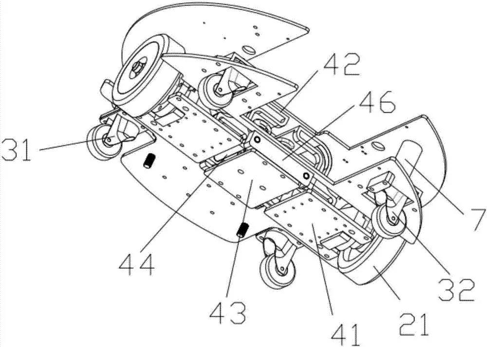 常規(guī)AGV底盤(pán)為六輪結(jié)構(gòu),2個(gè)驅(qū)動(dòng)+4個(gè)從動(dòng)輪。