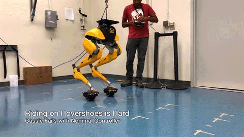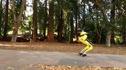 cassie cal的第一次滑輪就是腳滑原地360,差點摔倒在地,嚇得科研人員只能給它推著輪椅。