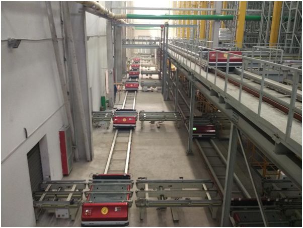 設計RGV小車,承擔從包裝車間到自動化立體倉庫長距離的運輸,提升了輸送效率、降低了投資成本。