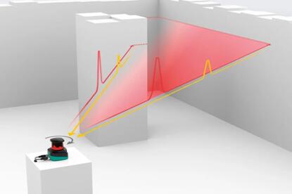 R2100雷達傳感器安裝在清潔機器人的尾端,用于AGV倒車時的防撞和輔助導航。采用多個寬光束發射器,確保在88°平面角掃描范圍內進行可靠的物體檢測。