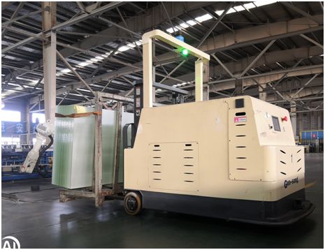 井松目前擁有平衡重式、全向前移式、托盤式等多款叉車AGV產品,其平衡重式AGV是與電動平衡重叉車相同功能的一款產品,電動平衡重叉車前無底腿,其后加有配重塊,整車較重較長,對通道距離要求比較高,適用各種類型的托盤,更換不同屬具可搬運不同種類的物料。而其長頸鹿系列中的全向前移式堆高AGV是井松擁有專利產品技術的一款車型,具有全自由360度方向的運動,可使車輛在狹窄巷道內轉向,提高貨架的空間布置密度;最大舉升高度7.5米。在其豐富的集成經驗和完備的產品線基礎上,井松在各行業擁有多項優秀案例。近期,井松AGV在玻璃制造行業首個應用案例也成功落地。在中航三鑫玻璃制造項目中,井松專業團隊根據現場環境自主設計的3噸車體,采用國內先進的激光導航定位算法,導航精度可以達到±5mm,現場由客戶的機械手抓玻璃放到指定的工位上,達到一定數量后,機械手講滿托盤信號傳遞給現場人員,現場工作人員對玻璃進行檢驗是否合格。合格的話就用呼叫按鈕,呼叫agv來進行取貨,agv過來取貨之前,會判斷客戶的提升機上是否有母托盤,如果有,則agv會生成直接放到提升機位置處的任務,如果提升機母托盤沒有到位,會生成一個放到緩存位的任務。整個緩存位的狀態由agv調度系統來管控。可人工干預緩存位的狀態。