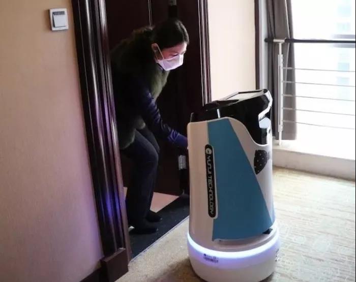 由于眾多疑似病例暫時不能確診,住在醫(yī)院中不但有感染風(fēng)險,也會耽誤其他病人的治療,所以很多與疑似患者接觸過的人員都被安排在了酒店進行自主隔離。這時,這些酒店機器人就迎來了它們新的使命,雖然同樣是承擔(dān)送物的工作,但意義是完全不同的。它們不僅是為顧客送去所需物品,也在為他們的生命負責(zé),減少了交叉感染的可能。