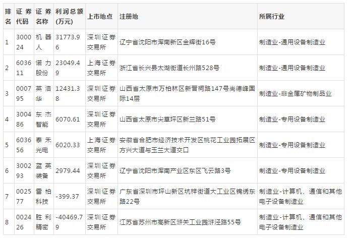報告大廳權威發布《2019年中國物流設備上市公司利潤規模排行榜(前三季度)》。2019年前三季度物流設備所有上市公司的利潤總額為41456.05萬元,前4家企業利潤總額占比為176.88%;榜單中有4家公司的利潤規模超過6070萬元大關,排名前兩家分別突破31773萬元和23049萬元,分別是沈陽新松機器人自動化股份有限公司和諾力智能裝備股份有限公司 。沈陽新松機器人自動化股份有限公司成為2019年物流設備利潤規模最大的中國公司,利潤高達31773.96萬元,諾力智能裝備股份有限公司緊隨其后,利潤達到23049.49萬元。具體詳細排名情況如下: