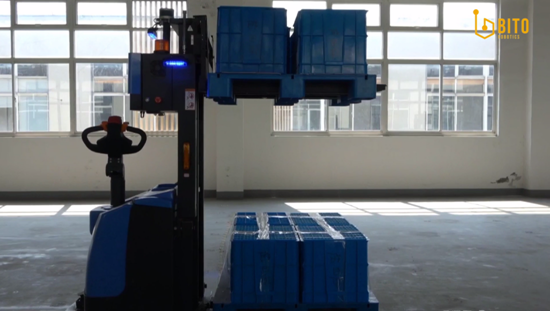 實(shí)現(xiàn)了二層棧板堆放---自動(dòng)識(shí)別一層棧板并判斷位置,貨叉取貨將二層棧板堆放至一層棧板上。