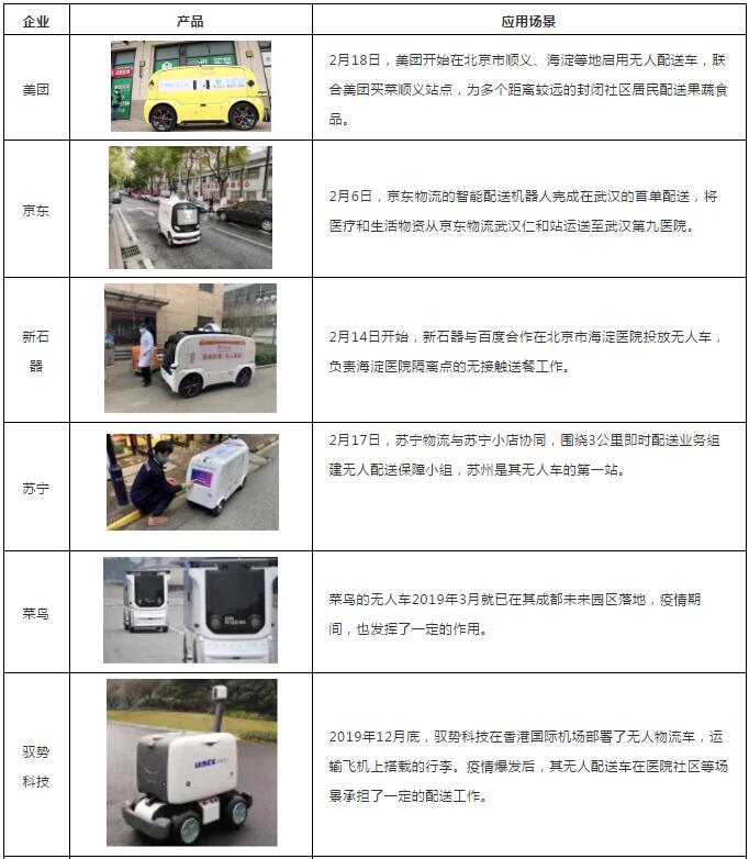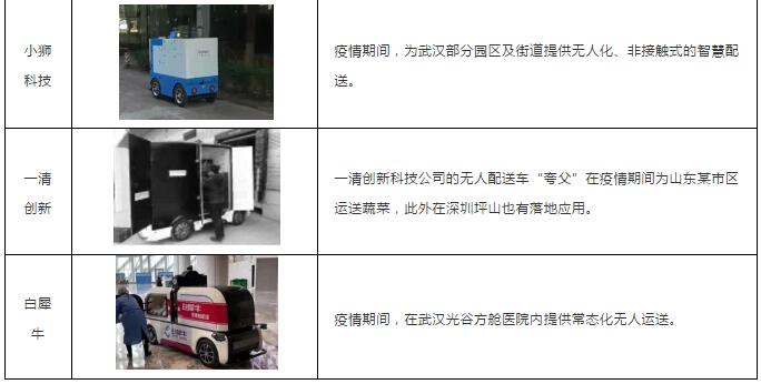 表:目前國內已有落地應用的無人配送車產品及企業(本表粗略統計,如有未完善之處,請指正)