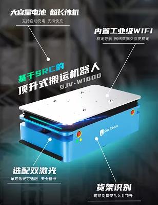 首先看一下基于仙知SRC的頂升式搬運機器人SJV-W600系列。 該系列產(chǎn)品內(nèi)置工業(yè)級 WiFi 客戶端設(shè)備,更穩(wěn)健的網(wǎng)絡(luò)數(shù)據(jù)交互,支持 WiFi 漫游,最高限額600KG的貨物搬運。