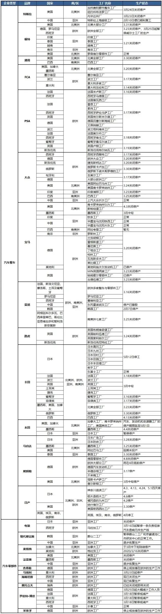 目前,國(guó)內(nèi)疫情初步得到控制,但海外疫情仍在蔓延,全球汽車行業(yè)的形勢(shì)依然不太樂(lè)觀。根據(jù)不完全統(tǒng)計(jì),目前大概有38家跨國(guó)車企集團(tuán)已經(jīng)關(guān)停或計(jì)劃關(guān)停工廠,工廠總數(shù)累計(jì)達(dá)到了150家以上。