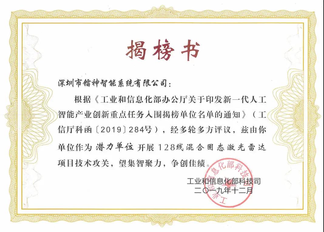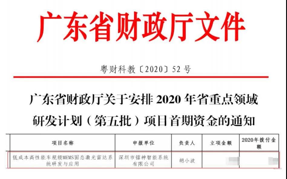 根據廣東省科學技術廳發布的《廣東省科學技術廳關于認定2019年度廣東省工程技術研究中心的通知》(粵科函產字【2020】141號文件),深圳市鐳神智能系統有限公司在經過廣東省科學技術廳組織的一系列專家評審和網上公示后,正式被認定為“廣東省激光雷達工程技術研究中心”。